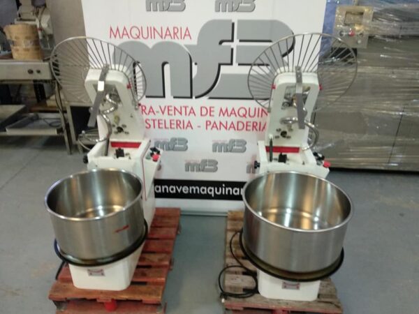 Amasadoras pizzeras marca Pizza Group. Disponibles dos, una con capacidad para 25 kg y otra para 40 kg de masa. Perol extraíble, regulador de velocidad y temporizador. Fabricadas en 2014, en perfecto estado. AMASADORAS PIZZERAS (PIZZA GROUP)