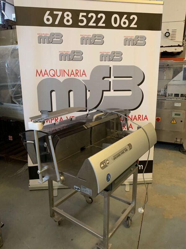 Cortadora-rebanadora de pan automática marca BIZERBA. Totalmente de acero inoxidable y en perfecto estado. Fabricación alemana. Ancho de corte regulable desde 3 mm hasta 30 mm. 2 velocidades. CORTADORA DE PAN BIZERBA