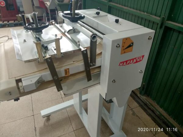 Formadora de barras de doble recorrido, marca Mapanva. Ancho de tablero 50 cm, largo total de maquina 1 metro. Con lonas nuevas, totalmente restaurada, muy silenciosa y en perfecto estado. Por sus reducidas dimensiones es ideal para obradores pequeños. FORMADORA DE BARRAS MAPANVA